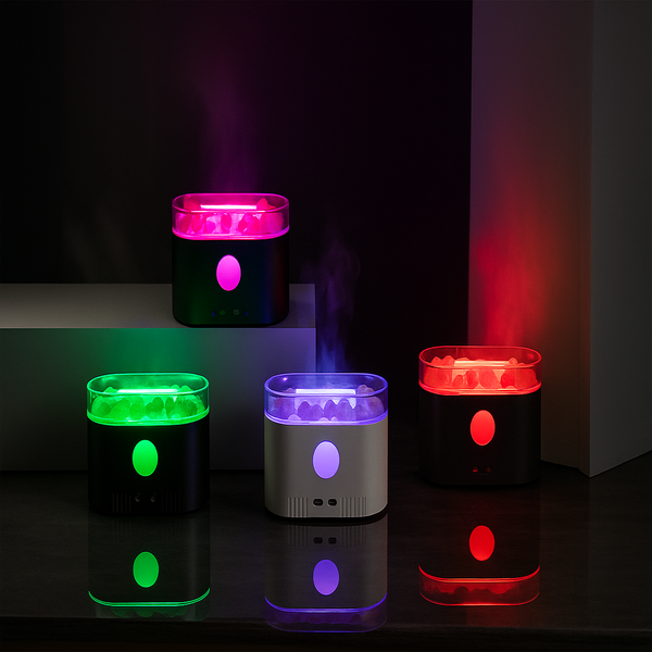 Su luz cálida y su suave niebla crean un ambiente de calma que favorece la relajación mental y un sueño profundo y reparador.